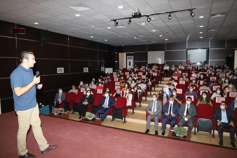 Eski ABD Başkanı Bill Clinton’ın düzenlediği 2021 Global Teacher Prize yarışmasında dünyanın en iyi 50 öğretmeni arasına giren Selçuk Yusuf Aslan, Kaymakamlık Konferans Salonunda öğretmenlik mesleğine ilk defa başlayan öğretmenlerle söyleşi programı düzenledi.