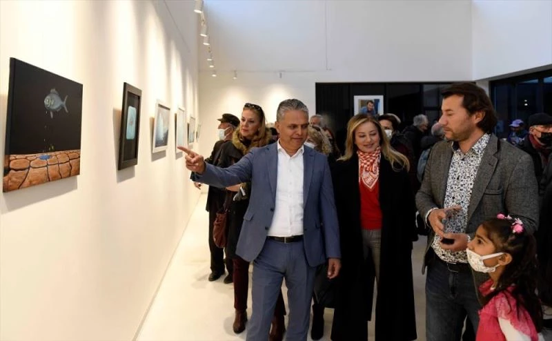 Sergide yer alan eserlerin önemli bir bölümünü Antalya'da kuruyarak yok olan gölleri konu aldığını dile getiren Demir, sergide ayrıca Coşkun Aral'ın İzlanda'da çektiği fotoğraflar üzerinden buz kütleleri ve balığın dünyasını konu alan resimlerinin yer aldığını aktardı