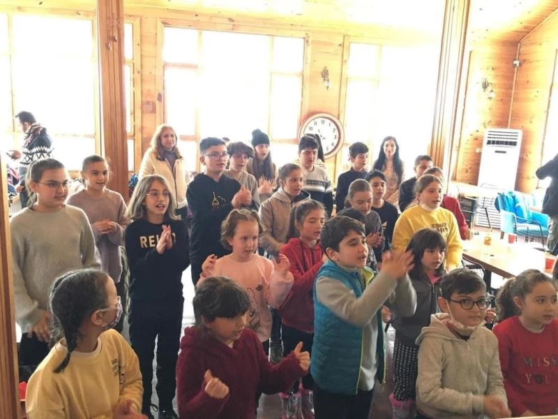 Çocuk korosunun minik üyeleri Ilgaz Dağı’nda karın tadını çıkardı