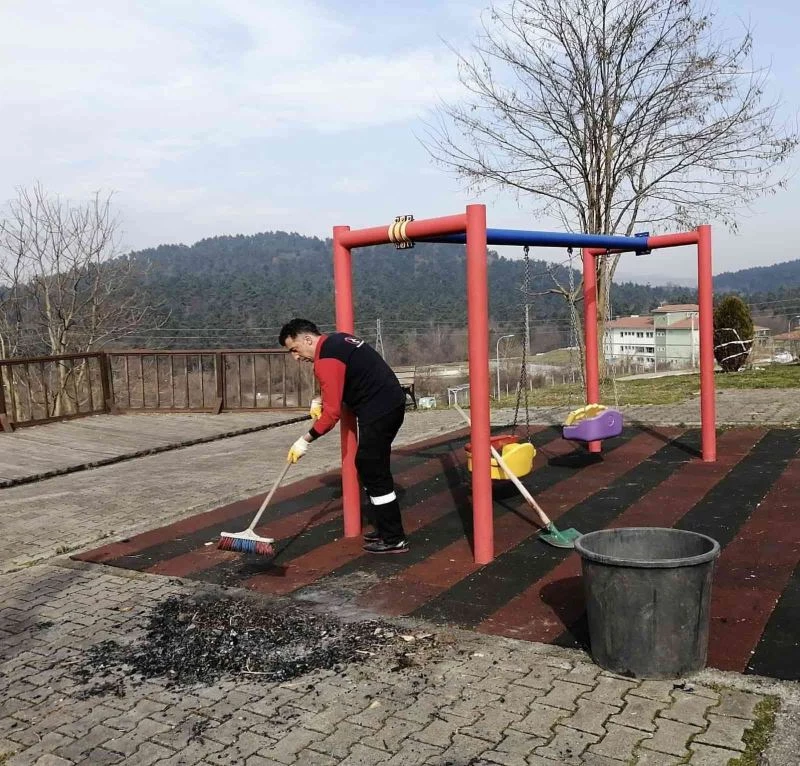 Belediye Temizlik İşleri ekipleri çocukların oyun alanında yakılan kül ve çöpleri temizlediler.
