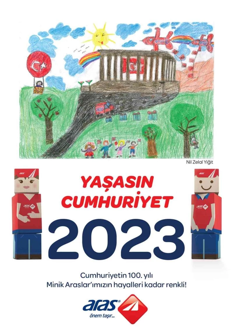 Kargo sektörünün önde gelen markalarından Aras Kargo, Minik Araslar ile geleneksel olarak düzenlediği resim yarışmasının bu yıl dördüncüsünü gerçekleştirdi. 2023 takvimi için çizilen resimlerin teması ‘Cumhuriyet’in 100. Yılı’ olarak belirlendi. 6-12 yaş arası Aras Kargo çalışan çocuklarının katılımıyla düzenlenen yarışma sonucunda 2023 yılı takviminde yer alacak resimler, firmanın yöneticilerinden oluşan jüri üyeleri tarafından değerlendirildi. Çocukların seçilen resimleri “Cumhuriyet’in 100. Yılı Takvimi”nde yer aldı.
