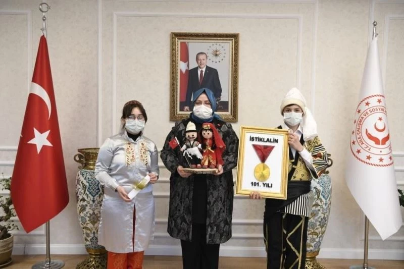80 il müdürlüğüne gönderilmek üzere Senem Ayşe gibi kurtuluşun simge isimlerinin örgü bebeklerini, filografi sanatıyla İstiklal Madalyası ile kurtuluş mücadelesini anlatan mektuplar da hazırlayan çocukların ilk ziyaretleri Aile, Çalışma ve Sosyal Hizmetler Bakanı Zehra Zümrüt Selçuk makamına oldu.