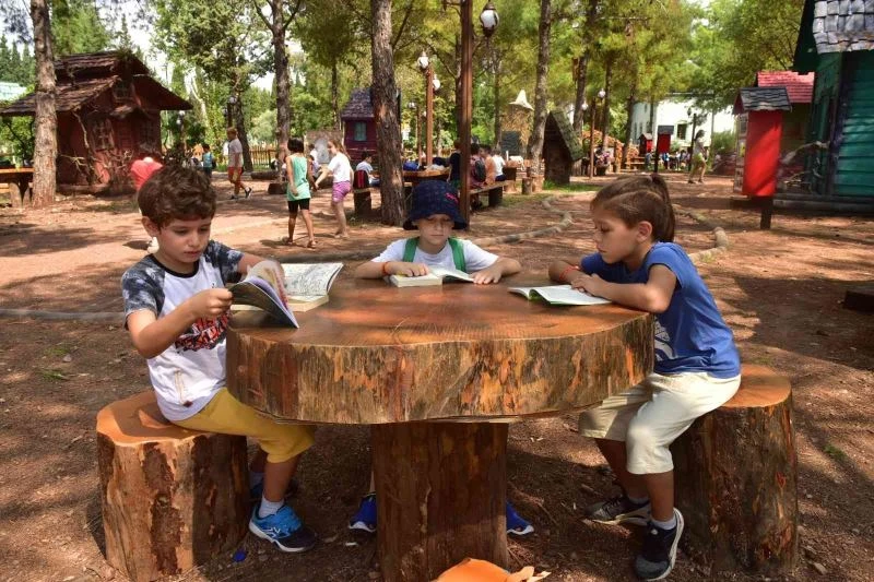 Kepez Belediyesinin Dokumapark’ta bin 500 metrekare alan üzerine kurduğu açık hava temalı Orman Kütüphanesini Antalyalı çocuklar çok sevdi.