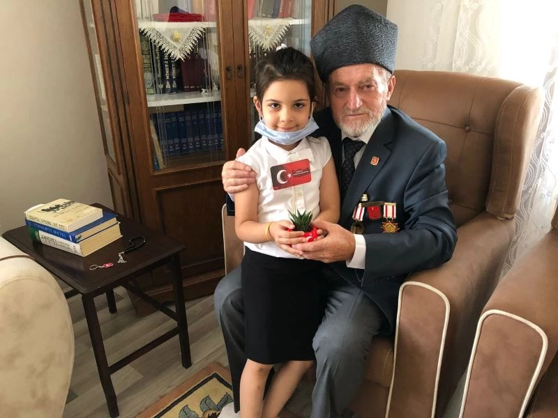 Çankırı’da çocuklar, Malazgirt Meydan Muharebesi’nin 950. ve Büyük Taarruzun 99. yıl dönümü etkinlikleri kapsamında gazileri ziyaret etti. Çocuklar, gazi dedelerinin anlattıkları anıları heyecan ile dinledi. Çankırı Belediyesi Çocuk Meclisi üyeleri, Kuşaklararası Kültürel Köprü Projesi kapsamında Çankırılı gazilerin evlerine konuk oldu. Türk bayrağı, kendi elleri ile yaptıkları tespihler ve saksılara diktikleri çiçekler ile ziyarete giden çocuklar, 94 yaşındaki Kore Gazisi Mustafa Kurt ve 68 yaşındaki Kıbrıs Gazisi Mustafa Sarıkaya’yı ziyaret etti. Savaştıkları dönemden bahseden gazilerin öğüdü de vatan üzerine oldu. Çankırılı Kore ve Kıbrıs gazileri, çocuklara hangi koşulda olurlarsa olsunlar vatanlarına sahip çıkmalarını ve bunu da en güzel çalışarak yapabileceklerini söyledi.