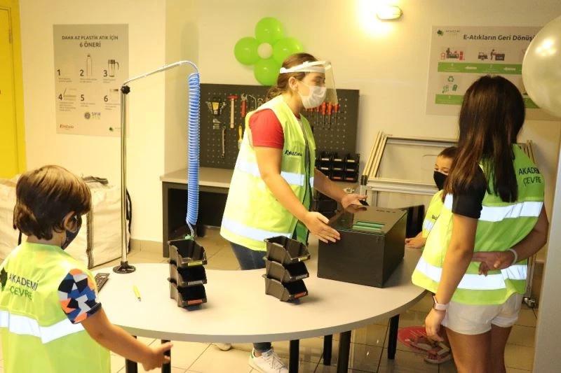 Akademi Çevre Geri Dönüşüm Merkezi’nde atık elektrikli ve elektronik eşyaların geri dönüşümü hakkında bilgi sahibi olan misafirler, “Atık Yönetimi Uzmanı” oluyor. Geri dönüşümün çevreye olan katkısından kullanılmış elektronik eşyaların ayrıştırılmasına kadar tüm süreci yerinde deneyimliyor. Bilgisayar kasasının içindeki ana kart ve kabloları çıkararak ayrıştırıyor ve geri dönüşüm makinasına göndererek küçük parçalar haline getiriyorlar. Elektronik eşyaların geri dönüştürülmesini akranlarıyla eğlenerek deneyimleyen misafirler, sürdürülebilirliğe olan katkısını da öğreniyor.