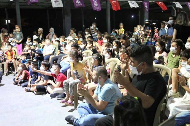 Efeler Belediyesi Şehir Tiyatrosu oyuncuları tarafından sahnelenen “Nasreddin Hoca ve Çocuklar” isimli müzikli çocuk oyunu, Ovaeymir Mahallesi’nde izleyicilerle buluştu. Serkan Fırtına’nın yazıp yönettiği oyunu çocukları ile beraber ebeveynler de büyük bir beğeniyle izledi. İlginin büyük olduğu oyunda, minik seyirciler doyasıya eğlendi.