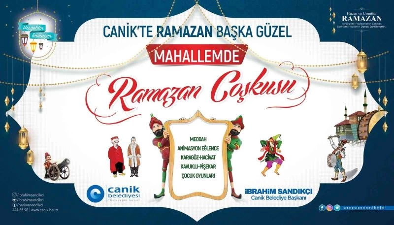 Canik Belediyesi, ‘Mahallemde Ramazan Etkinlikleri’ adıyla düzenlenecek etkinliklerle ilçedeki çocuklara farklı bir Ramazan coşkusu yaşatmaya hazırlanıyor. Çocuk oyunları, animasyon gösterileri ve eğlencelerin yanı sıra Karagöz-Hacivat, Meddah, Kavuklu ile Pişekar gibi geleneksel Türk tiyatrosu örneklerinin yer alacağı etkinlik programı Ramazan ayı boyunca her hafta sonu ayrı bir mahallede devam edecek.