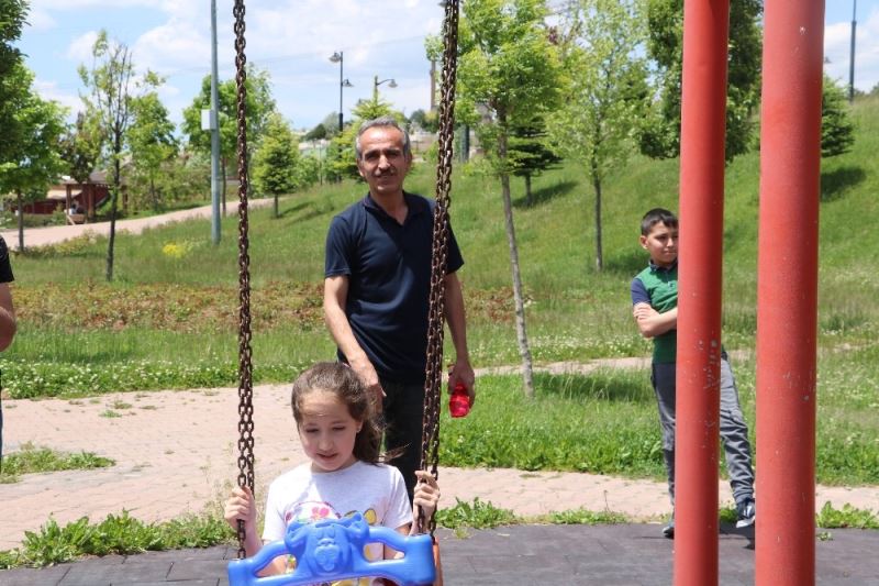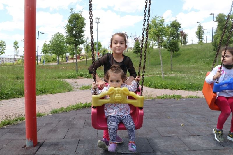 Sivas’ta 4 saatlik izinlerini bayramda gidemedikleri mezarlıkları ziyaret ederek değerlendiren çocuklar, mezarlık ziyaretinin ardından parklara akın etti.