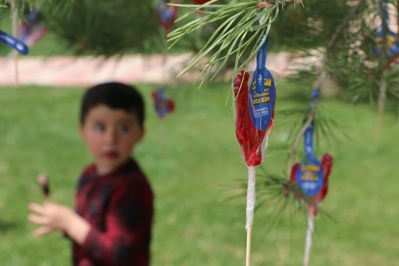 Aziziye Belediyesi, 23 Nisan’da küçük başkan olarak koltuğa oturttuğu miniğin talimatını yerine getirerek Aziziye İlçesi sınırlarında bulunan çocuk parklarındaki ağaçlara şekerler astı. Ağaçlardaki şekerleri gören minikler şeker alabilmek için birbiriyle yarıştı.