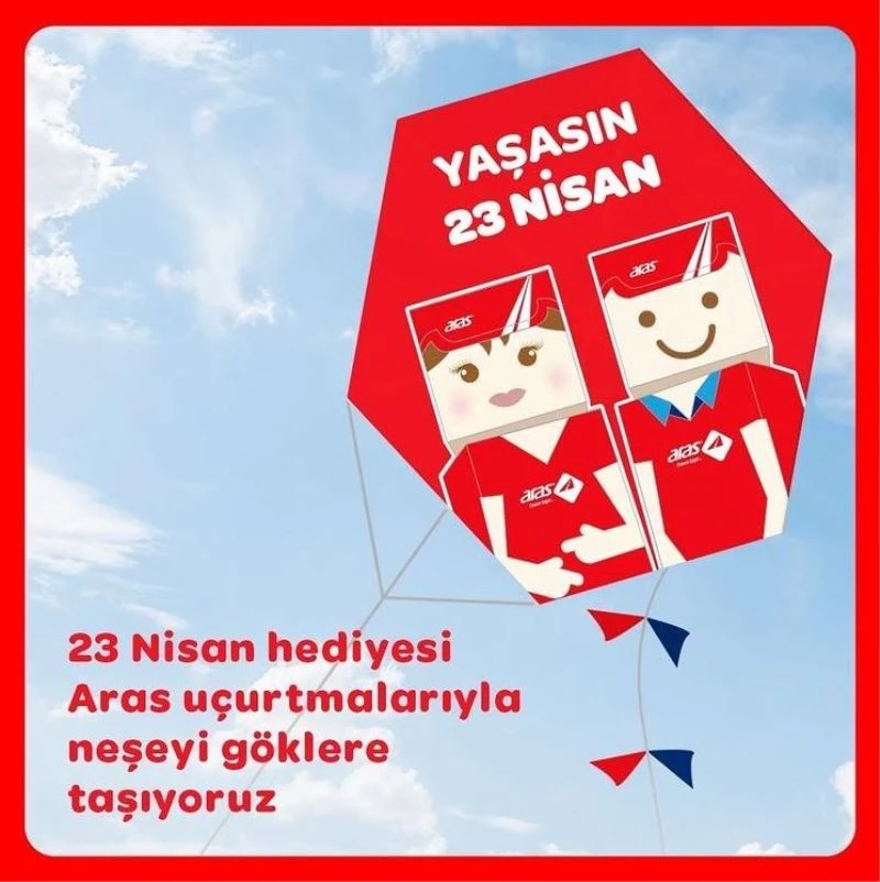 Aras Kargo, çocuklara özel bir etkinlikle 23 Nisan coşkusunu gökyüzünde yaşatıyor. Şirket, 23 Nisan Ulusal Egemenlik ve Çocuk Bayramı’nı çalışanlarının çocuklarına ve sosyal medyadan düzenlediği çekiliş ile takipçilerine armağan ettiği özel uçurtmalarla kutladı.