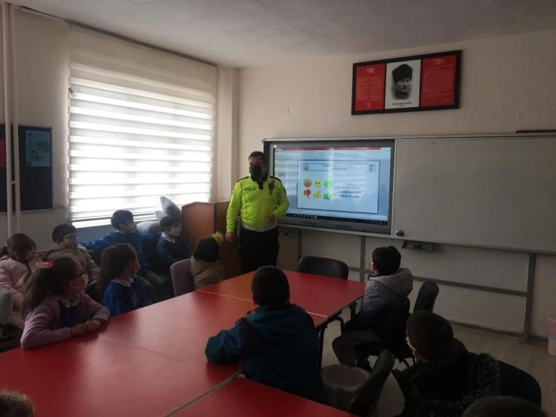 Kütahya’nın Pazarlar İlçe Emniyet Amirliği Trafik Büro ekipleri, ilkokul öğrencilerine trafik güvenliği ve trafik kuralları ile ilgili eğitim verdi.