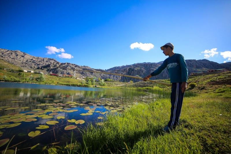 Kamistan yaptiklari oltalarla balik avlayanlardan Hasan Hüseyin Külahli, AA muhabirine, her yil yaz aylarinda gölün yakinina çiktiklarini söyledi.