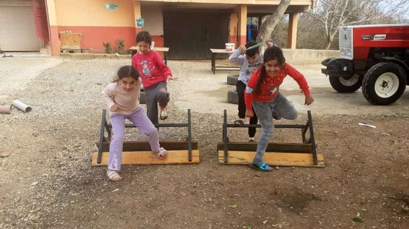 Birinci olabilmek için kıyasıya mücadele eden çocuklar, “Okullarımız tatil, kısıtlama nedeniyle evde canımız sıkıldı. Kendi imkanlarımızla evimizin bahçesine Survivor parkı kurduk. Arkadaşlarımızla yarışarak eğleniyoruz” dediler.