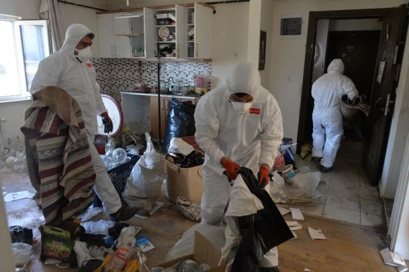 ’Çok kötü kokuyor’ şikayeti yapılan evden bir kamyon dolusu çöp çıktı
