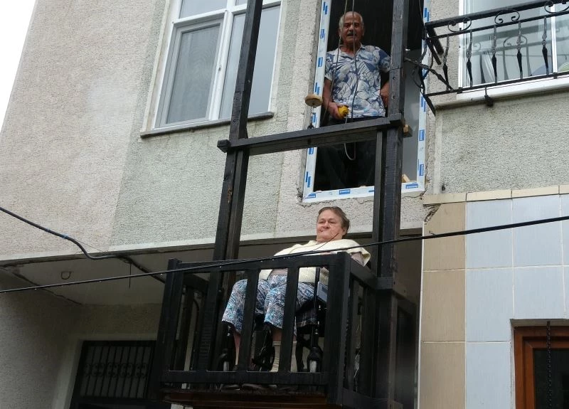 Ordu’nun Perşembe ilçesinde yaşayan Durdu Okur, hastalıkları nedeniyle yürüyemeyen ve evden çıkamayan 45 yıllık eşi için, emekli olduğu mesleği marangozluğunu konuşturarak, ahşaptan motorlu asansör yaptı. Asansör sayesinde yürüyemeyen kadın, kolay bir şekilde birinci kattaki evinden sokağa inebiliyor.
