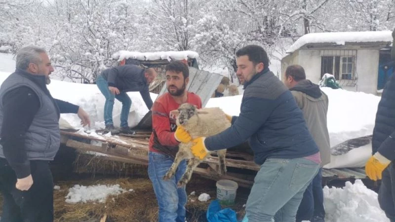 Kocaeli’nin Gölcük ilçesinde üzerine biriken karın ağırlığı ile çöken ahırda mahsur kalan çok sayıda küçükbaş hayvan, belediye ekiplerince telef olmaktan kurtarıldı.