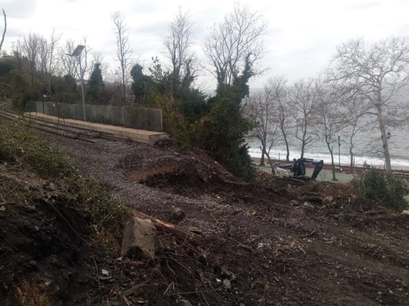 Zonguldak’ın Kapuz mevkiinde plajda yapılan çevrede düzenlemesi kapsamında çöken tren yolu için tamir etme çalışmaları başladı.