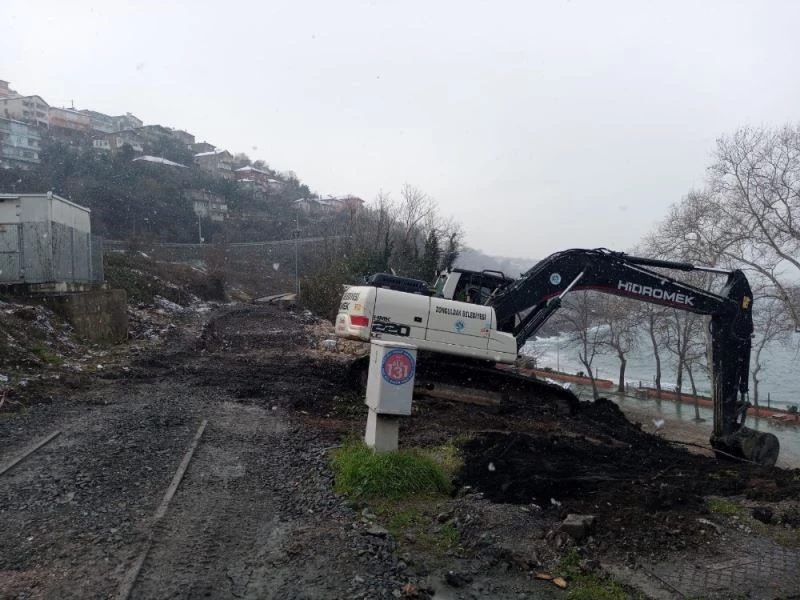 Zonguldak Belediyesine bağlı ekipler Kapuz’da çöken tren yolunu tamir etmek için çalışmalarına devam ediyor.