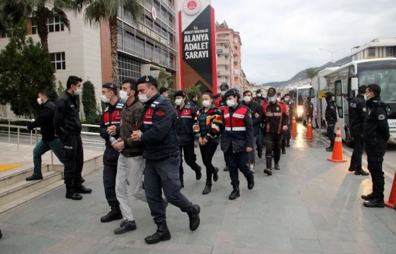 Gözaltına alınan 42 şüpheliden 25’i Alanya İlçe Jandarma Komutanlığındaki 3 günlük işlemlerinin ardından geniş güvenlik önlemleri alınarak adliyeye sevk edildi. İşlemleri süren diğer şüphelilerin ise yarın adliyeye sevk edilmesi bekleniyor.