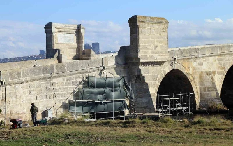 Çökme riski taşıyan tarihi köprüde restorasyon çalışması başlatıldı