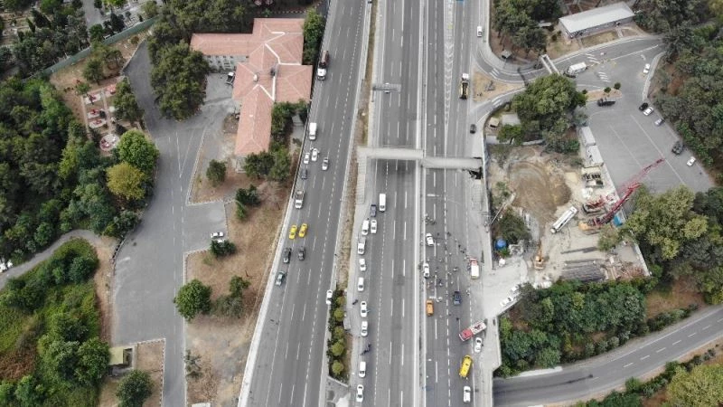 Hasdal Otoyolu’ndaki Hasdal Kışlasının önündeki üst geçidin çökmesi sonrası kilometrelerce trafik oluştu. Çöken üst geçit ve oluşan trafik drone ile havadan görüntülendi.
