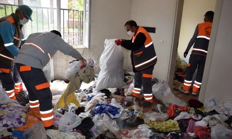 Malatya’da koku nedeniyle rahatsız olan vatandaşların ihbarı üzerine bir eve giden ekipler, içeriden bir kamyon çöp çıkarttı.