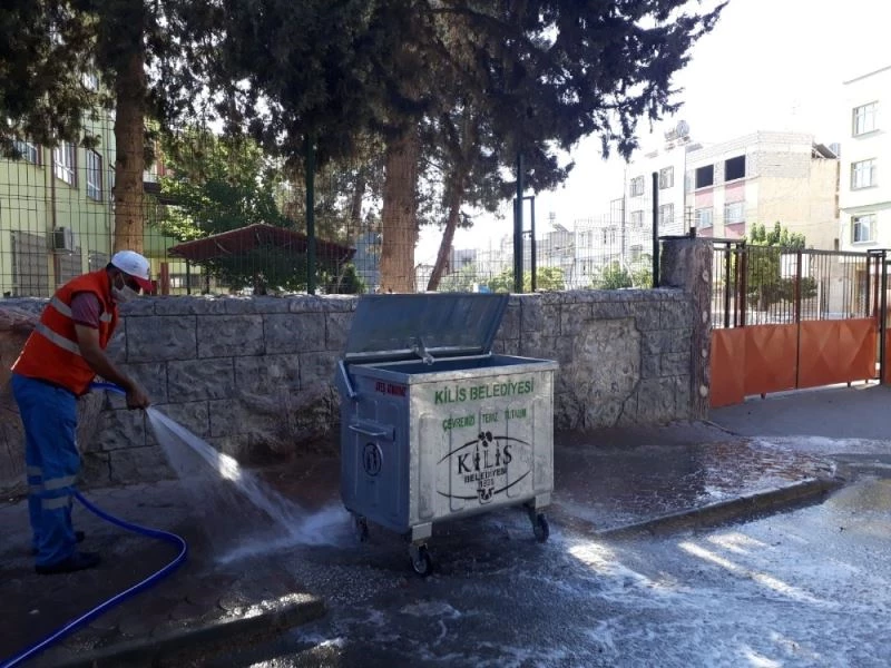 Temizlik İşleri Müdürlüğü tarafından Vatandaşlara daha sağlıklı ve temiz bir çevrede yaşamaları için çözümler üretmeye devam ediliyor. Kilis genelin de eskiyen çöp konteynerlerinin büyük bir kısmını yenilenirken, çöp konteynerleri sabunlu suyla yıkanıyor. Yetkililer, çöpleri konteynerlerin içerisine atılmasını, çevreye gelişi güzel rast gele çöp atılmamasını istediklerini belirttiler.