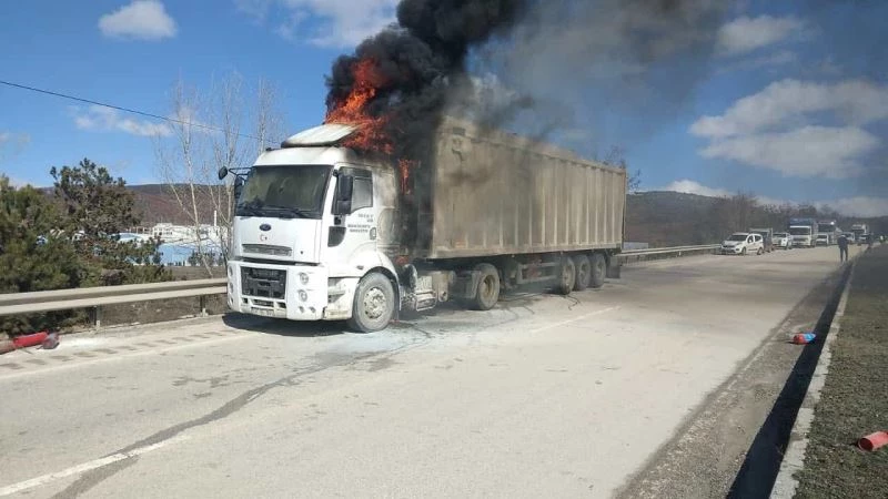 Edinilen bilgiye göre, İnebolu ilçesinde katı atık transfer istasyonundan yüklediği çöpleri taşıyan tır, Kastamonu Organize Sanayi Bölgesinde seyir halindeki iken henüz bilinmeyen sebeple motor kısmından yanmaya başladı. Tır sürücüsü, aracı kenara çekerek itfaiye ekiplerinden yardım istedi. Olay yerine sevk edilen Kastamonu Belediyesi itfaiye ekipleri, yanan tırı söndürerek kontrol altına aldı. Olayın ardından jandarma ekipleri, çevrede güvenlik önlemleri alarak incelemelerde bulundu.