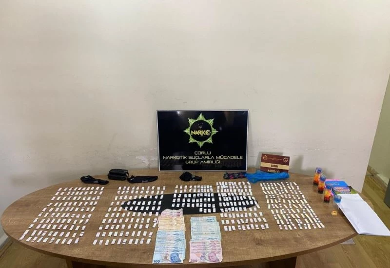 Tekirdağ İl Emniyet Müdürlüğü Narkotik Suçlarla Mücadele Şubesi Çorlu Grup Amirliği ekiplerince Hıdırağa (Kore) Mahallesi’nde uyuşturucu ve uyarıcı madde ticareti yapan şahıslara yönelik çalışma yapıldı. Yapılan çalışmalar kapsamında tespit edilen üç şahsın ikametinde yapılan aramada, çorapların içerisine gizlenmiş vaziyette fişeklenmiş halde 454 fişek uyuşturucu maddelerden eroin maddesi, uyuşturucu madde satışından elde edildiği değerlendirilen 10 bin 315 TL para, uyuşturucu madde fişeklemesinde kullanılan 4 kutu saç tokası ve 5 adet sayfaları kesik defter ele geçirildi.