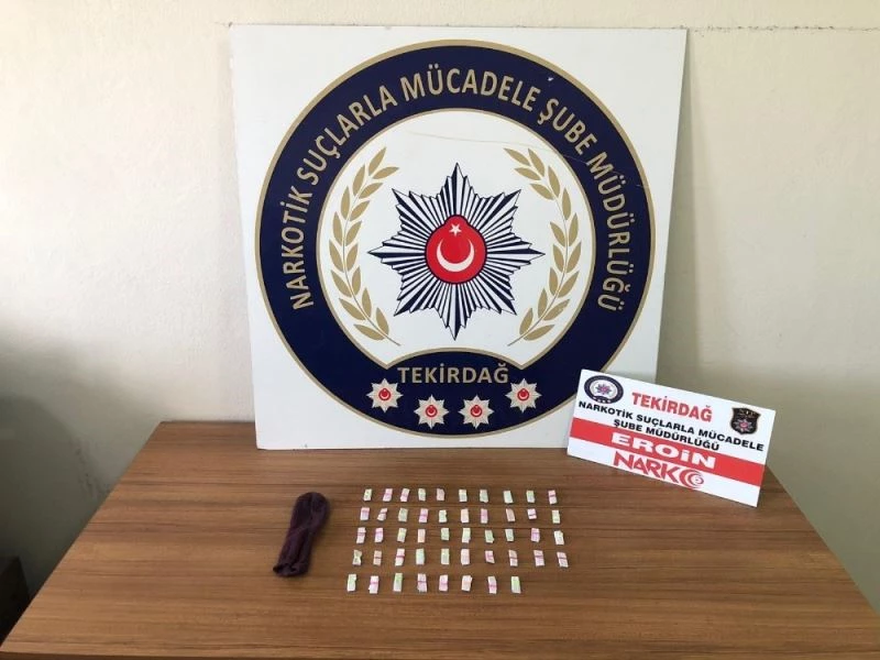 Tekirdağ İl Emniyet Müdürlüğü Narkotik Suçlarla Mücadele Şube Müdürlüğü Çorlu Grup Amirliğince Çorlu İlçesi Cemaliye Mahallesinde uyuşturucu ve uyarıcı madde satışı yapan şahıslara yönelik çalışma yapıldı. Polis çalışmasında tespit edilen 1 şahsın üzerinde ve bulunduğu ağaçlık alanda yapılan aramada çorabın içerisinde fişeklenmiş halde 48 fişek uyuşturucu maddelerden eroin ele geçirildi.