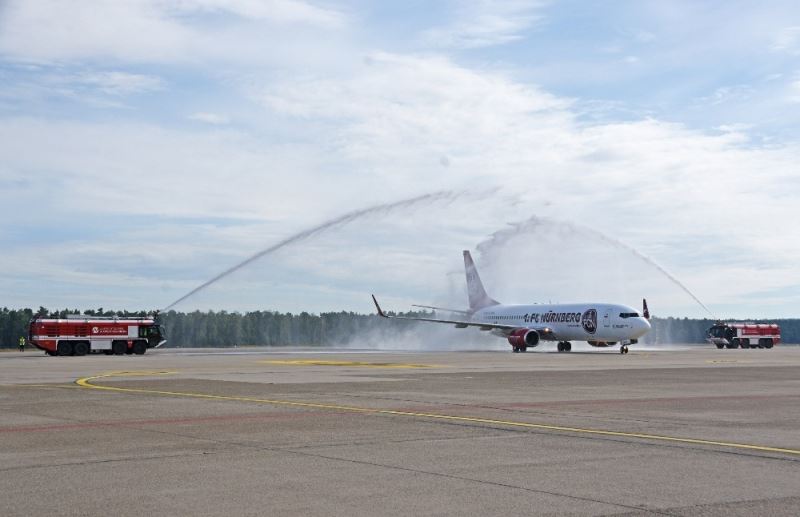 Almanya’nın popüler futbol takımlarından 1. FC Nürnberg Futbol Kulübü’ne özel tasarlanan Boeing 737-800 tipi uçak Nürnberg Havalimanında kulüp temsilcilerinin ve Nürnberg Havalimanı yöneticilerinin katıldığı karşılama töreni ile tanıtıldıı. Önümüzdeki sezonda, firmanın Türkiye ve Avrupa uçuşlarını Nürnberg’de base olarak gerçekleştirecek olan uçak, havalimanına ilk uçuşunu yaparken bir havacılık geleneği olan su takıyla karşılandı.