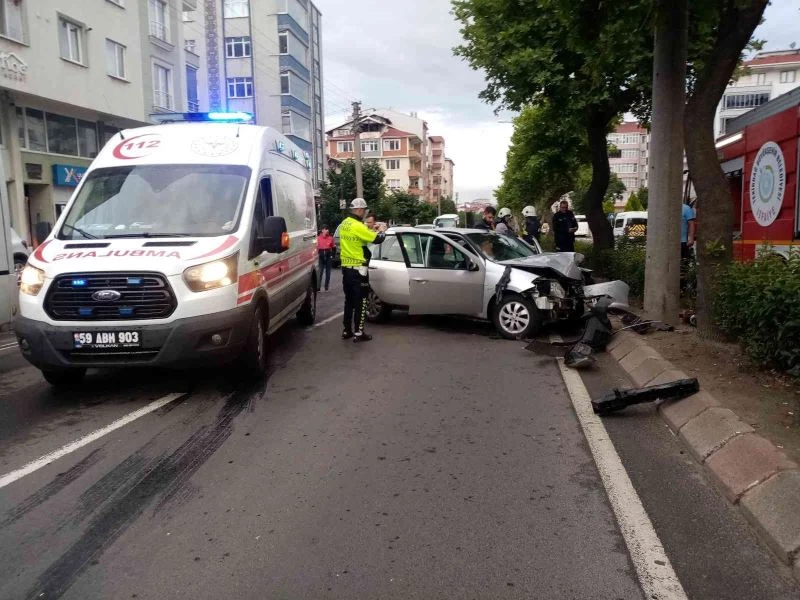 Kaza, Şeyh Sinan Mahallesi Atatürk Bulvarı üzeri Trakya Hayvan Hastanesi mevkiinde meydana geldi. Edinilen bilgiye göre, Ali Osman Çelebi Bulvarı istikametinden ilçe merkezi istikametine seyreden Burak Otman (31) idaresindeki otomobil, sürücüsünün direksiyon hakimiyetini kaybetmesi sonucu orta refüjdeki beton aydınlatma direğine çarptı.