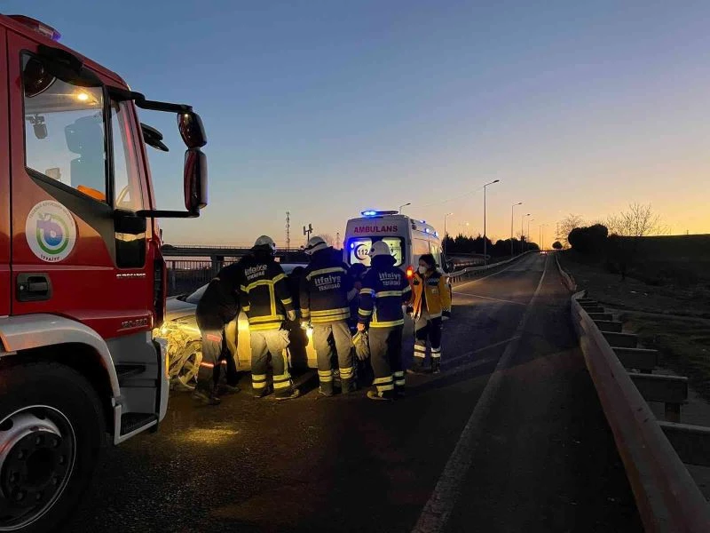 Tekirdağ Çorlu’da otomobilin bariyerlere çarptığı kazada sürücü yaralandı.