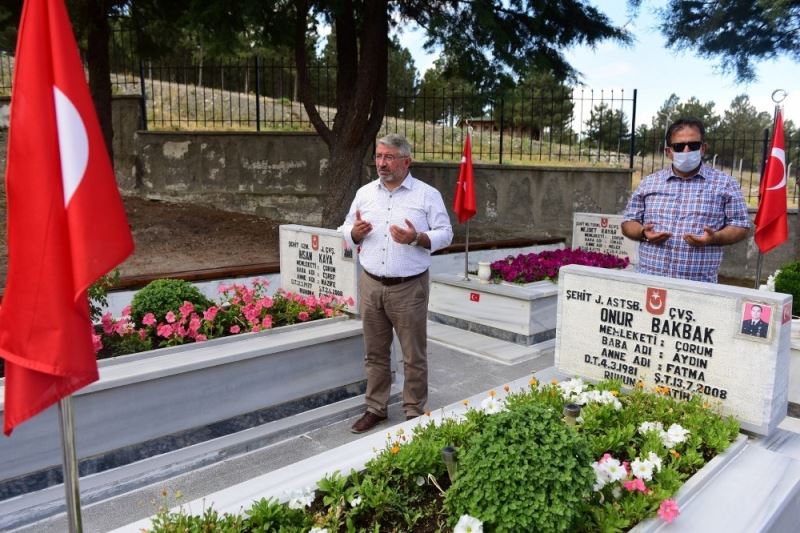 Çorum Valisi Mustafa Çiftçi ile birlikte şehit Jandarma Astsubay Çavuş Bekir Eren Deniz ve Jandarma Uzman Çavuş Habib Gökçe’nin ailelerini ziyaret eden Başkan Aşgın, gazi Jandarma Uzman Çavuş Seyfettin Serenboy’un bayramını tebrik etti.