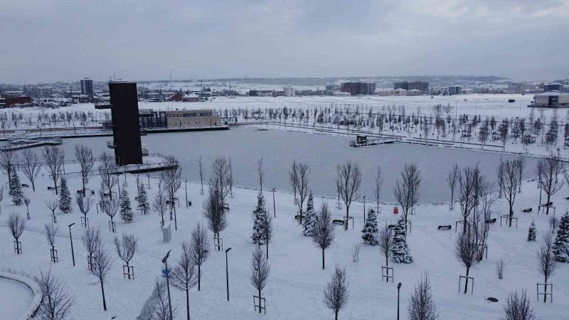 Beyaz örtüyle kaplanan millet bahçesinde kartpostallık manzaralar oluştu. Eşsiz bir görünüme kavuşan millet bahçesindeki manzara görenleri kendisine hayran bıraktı. Mest eden görüntülerin ortaya çıktığı millet bahçesi drone ile görüntülendi.