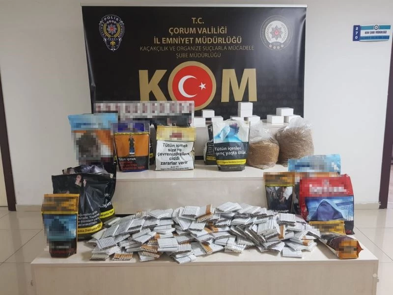 Çorum Emniyet Müdürlüğü ekiplerince düzenlenen iki farklı operasyonda çok sayıda kaçak makaron sigara ile tütün ele geçirildi.