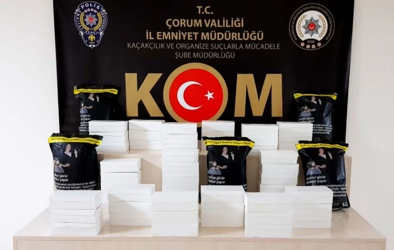 Çorum’da polis ekipleri tarafından düzenlenen operasyonda çok sayıda kaçak sigara ele geçirildi.