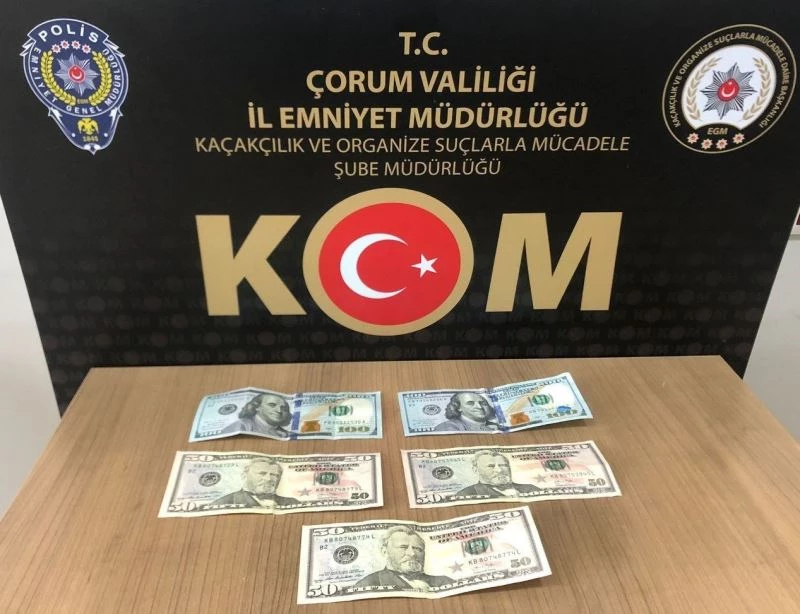 Edinilen bilgiye göre, parada sahtecilik yapmak suçu kapsamında ekipler tarafından il merkezinde yürütülen çalışmalar kapsamında, sahte döviz ile ticaret yapmak suretiyle piyasa değerinin altında Türk lirasına çevrilmeye çalışan, döviz büroları ve bankalar yerine giyim, yiyecek içecek, konaklama vb. yerlerde alış-veriş yapmak suretiyle piyasaya süren ve yabancı ülke vatandaşı izlenimi vererek, elinde Türk Lirası bulunmadığını söyleyip sahte dövizleri piyasa değerinin altında Türk Lirasına çeviren bir şahsın aracına sahte plaka takarak Samsun’dan Çorum’a geldi belirlendi. Şüpheli şahsın sahte Amerikan Dolarları ile esnaftan alış-veriş yapmak suretiyle, mevcut değerinin altında piyasaya sürdüğünün tespit edilmesinin ardından şahsın aracı ile Samsun’daki ikamet ve iş yerinde yapılan adli aramalarda 2 adet sahte 100 ABD doları ile 32 adet sahte 50 ABD doları ele geçirildi.