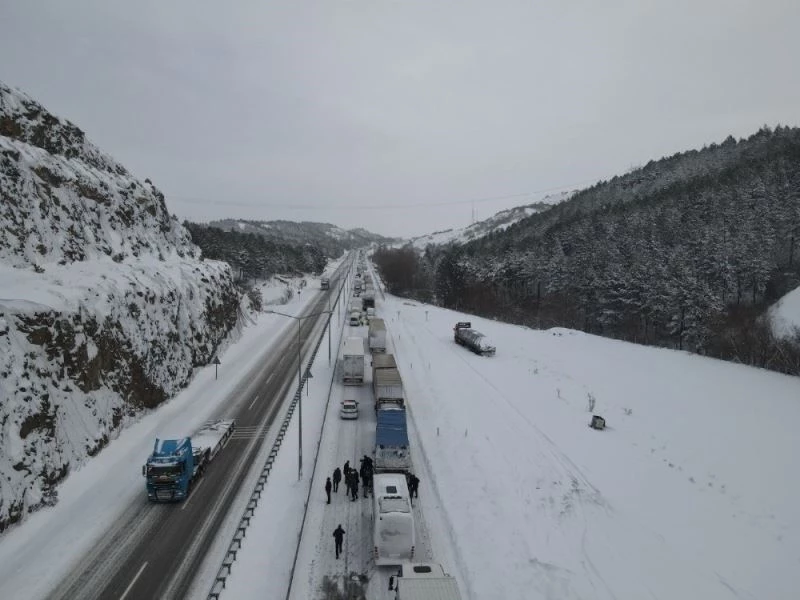 Karayolları ve polis ekiplerinin yoğun mesai harcadığı karayolunda kar temizleme ve tuzlama çalışmaları sürerken Ankara yönünden gelen yolcu otobüsleri de otogarda yolun açılması bekletiliyor.