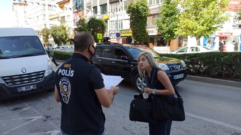 Denetimler sırasında maske takmayan bir kadın ile görevli polis arasında yaşanan diyalog ise güldürdü. Gazi Caddesi’nde denetim yapan polis ekipleri, maskesiz gezen bir kadını durdurarak maske takması için uyarıda bulunarak kimliğini istedi.