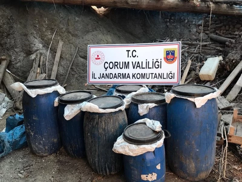 Çorum İl Jandarma Komutanlığına bağlı timler tarafından düzenlenen operasyonda yüzlerce litre kaçak/sahte alkollü içki ele geçirildi.