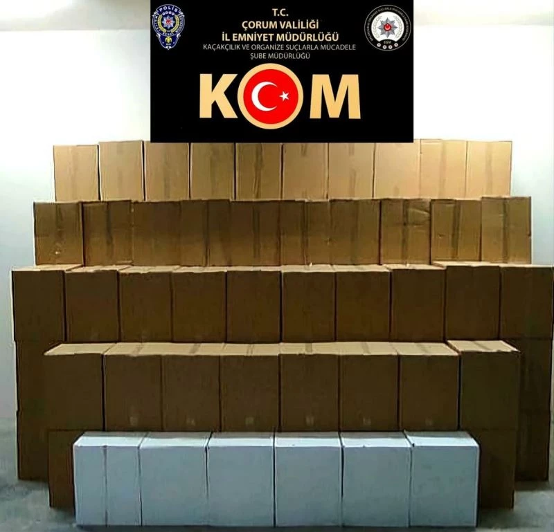 Edinilen bilgiye göre, Çorum Emniyet Müdürlüğüne bağlı Kaçakçılık ve Organize Suçlarla Mücadele Şube Müdürlüğüne bağlı ekipler Osmancık İlçesi’nde bir şahısta çok sayıda kaçak makaron sigara bulunduğu bilgisine ulaştılar. Düzenlenen operasyonda şüpheli şahsın aracında yapılan aramada çeşitli markalarda 1 milyon 400 bin adet gümrük kaçağı makaron sigara ile 45 adet sahte TAPDK bandrolü ele geçirdiler.