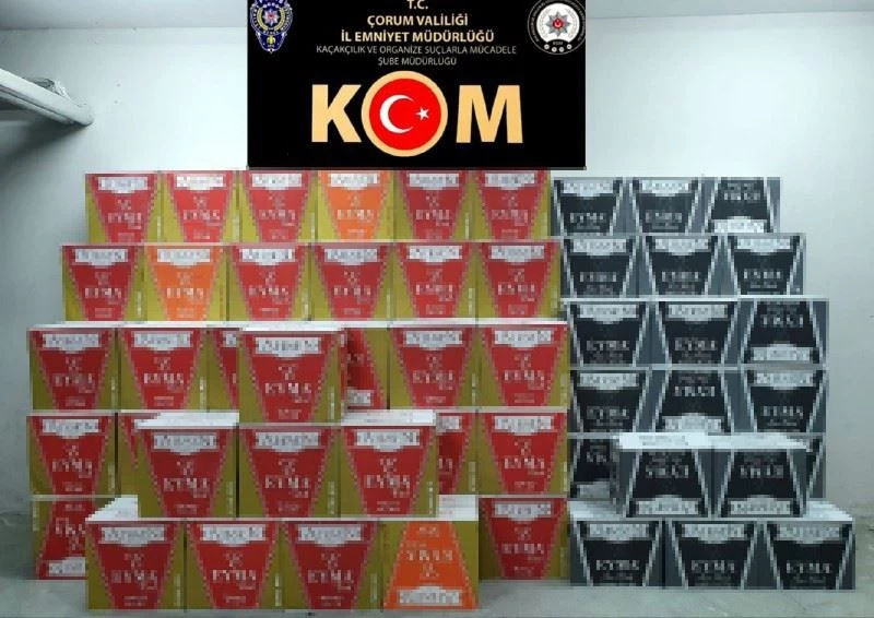 Çorum’da polis ekipleri tarafından düzenlenen operasyonda çok sayıda bandrolsüz kaçak makaron sigara ele geçirildi.
