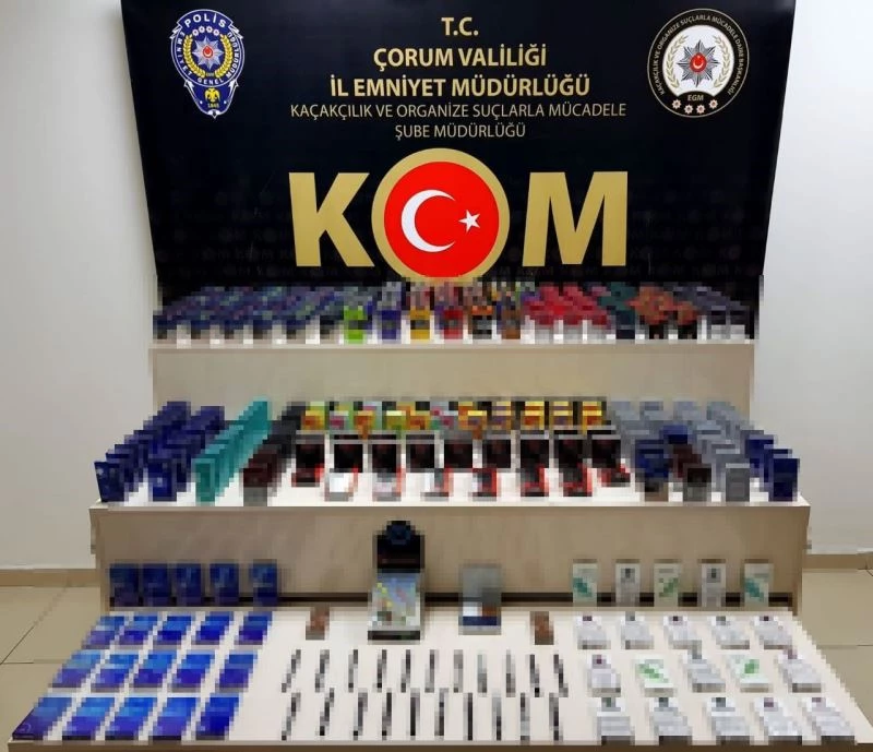 Çorum Emniyet Müdürlüğü, Kaçakçılık ve Organize Suçlarla Mücadele Şube Müdürlüğü ekipleri düzenledikleri operasyonda çok sayıda kaçak sigara ile cinsel içerikli ürün ele geçirdi.