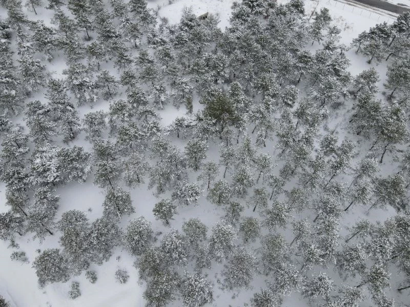 Havadan görüntülenen Bahabey Çamlığında da karla kaplanan çam ağaçlarının görüntüsü görenleri adeta büyüledi.
