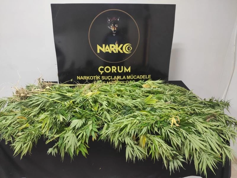 Çorum’un Mecitözü ilçesinde, Narkotik Suçlarla Mücadele Şube Müdürlüğü ekiplerince düzenlenen operasyonda 80 kök hibrit Hint keneviri bitkisi ele geçirildi.