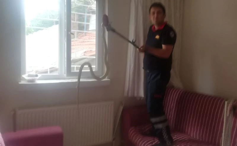 Çorum’da yılan paniği, eve giren yılanı itfaiye yakaladı