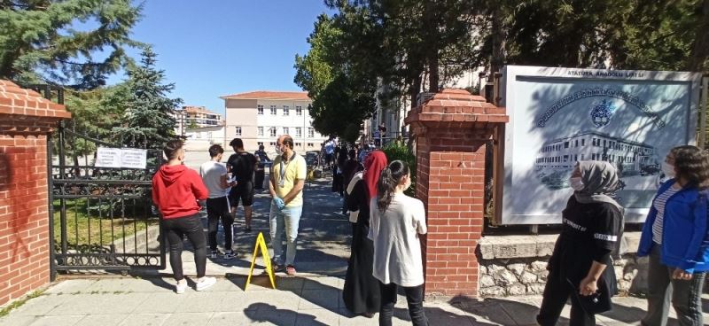 Bina girişindeki görevlilerce öğrencilere maske dağıtıldı. Öğrenciler içeri girmeden bina girişine konulan dezenfektanla ellerini temizledi. Yetkililerin sık sık sosyal mesafeye uymaları konusunda uyardığı öğrenciler, polis kontrolünden geçtikten sonra binaya alındı. Okul bahçesine alınmayan veliler sınav başlamadan görevlilerce okul önlerinden uzaklaşmaları konusunda uyarıldı.