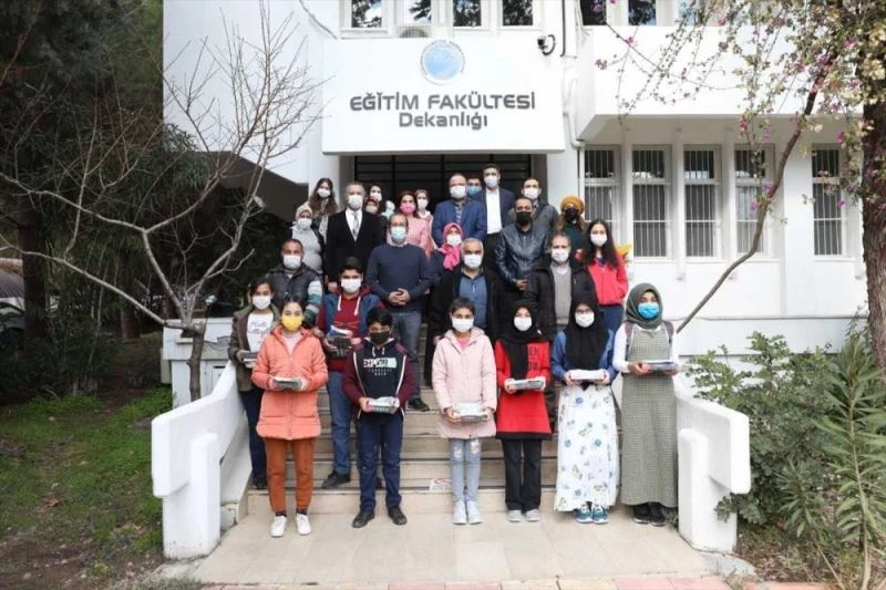 Üniversiteden yapılan açıklamaya göre, Eğitim Fakültesi Rehberlik Bölümü tarafından belirlenen öğrencilere tabletleri ve birer kitap, Kovid-19 kuralları çerçevesinde düzenlenen törenle verildi.