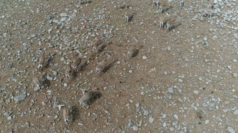 Şırnak Cudi Dağına bırakılan nesli tükenme tehlikesi altındaki ’Gazella subgutturosa’ türü ceylanlar, drone ile havadan görüntülendi.